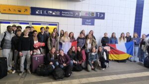 Bienvenue à Ingolstadt! Mit zwei großen Flaggen in den Farben von Deutschland und Frankreich standen 16 Zehntklässlerinnen und Zehntklässler in …