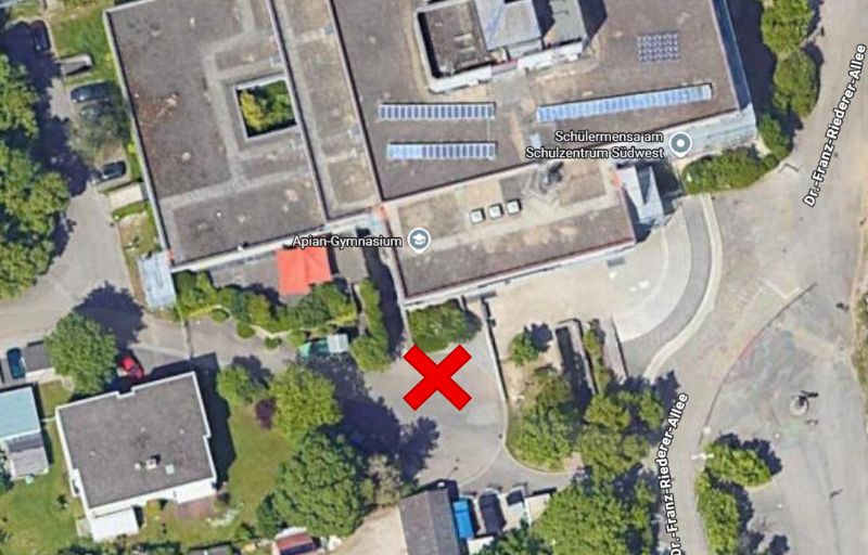 Die Tonnen werden links vom Abgang zum Fahrradkeller stehen.